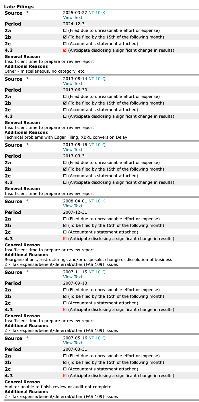 By the way, that 10-K, for the year ending December 31, 2024, was not filed until April 15, 2025. Dominari — the former Aikido Pharma — has a history of late filings.