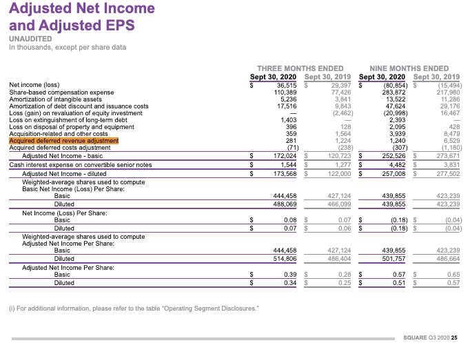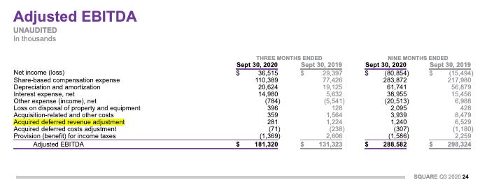 Just look at Square. The company is still adding back its “ghost revenue” — acquired deferred revenue that was written off permanently when the acquisition occurred — to its Adjusted EBITDA, Adjusted Net Income, and Adjusted EPS non-GAAP metrics. Here’s the most recent summary of the impact of this adjustment from its latest earnings release: