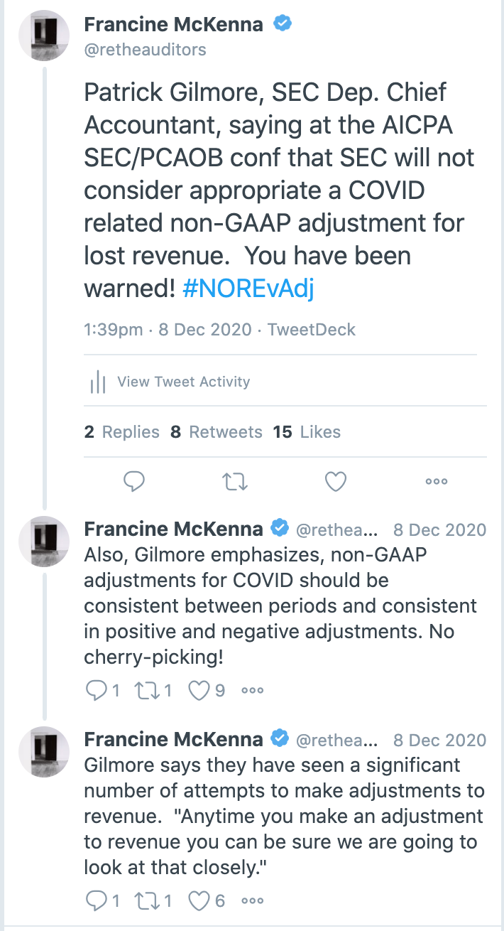 Still, there are clear examples that the SEC’s interaction by comment letter has led to changes in reporting on revenue adjustments.